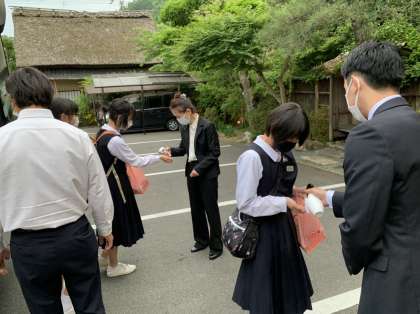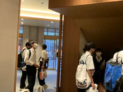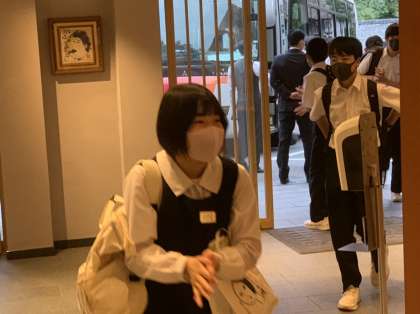 無事に全員がホテルに到着。検温、手指消毒をして館内に入ります。