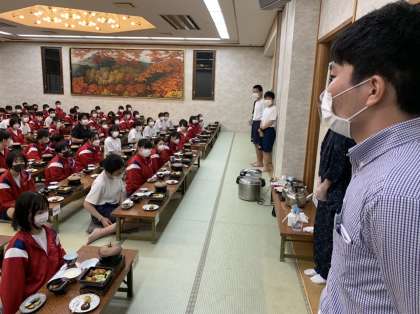 待ちに待った夕食タイムがもうすぐです。食事係からの話がありました。
