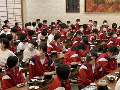 入浴時間にゆとりを持たせるために、日程を変更し、部屋長会議をなくして夕食後に打合せを行いました。3分の2が終わった修学旅行。残りも協力し合って頑張ろうという意思が、聞く態度に表れていました。
