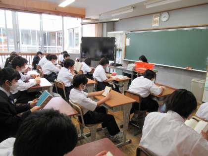 おはようございます。1・2年生は朝読書で穏やかに一日がスタートしました。今日は2年生を対象にキャリア教育の一貫として、本校卒業生による講話会が開かれます。様々な分野で活躍する先輩のお話、楽しみですね。1年生は特別活動の時間に、学年レク大会を行います。友達のよさ、先生方の意外な一面を発見できることでしょう。皆で良い一日にしていきたいと思います。