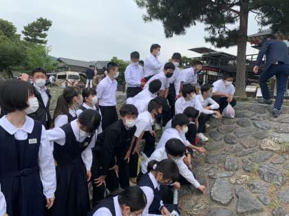 渡月橋をバックに、1、2、3組が集合写真を撮りました。