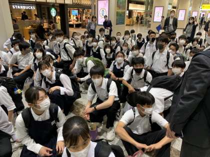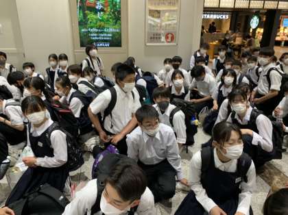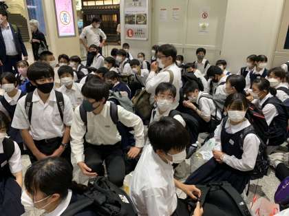 改札を通り、新幹線発車時刻まで待機しています。全員元気です。