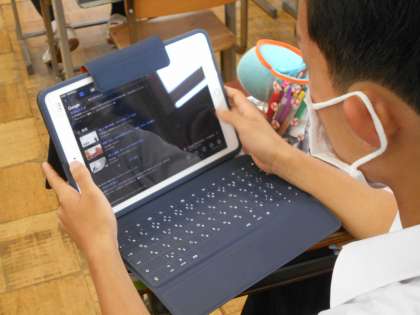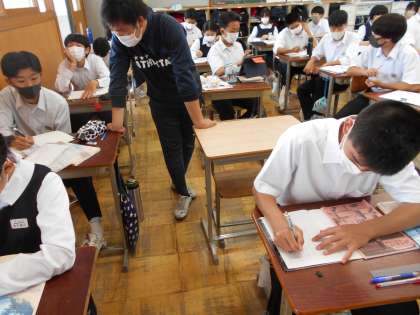 3年生の国語の授業は俳句づくり。修学旅行の思い出を俳句にしていきます。友達と相談したり,資料を調べたりして題材を決めていました。