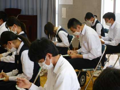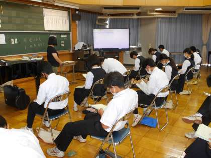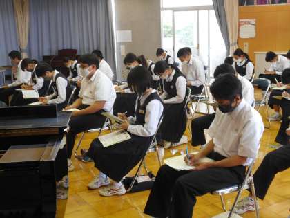 3年生の音楽の授業は鑑賞。2人の歌唱を比較して鑑賞していました。