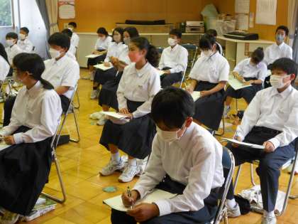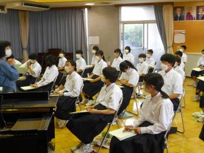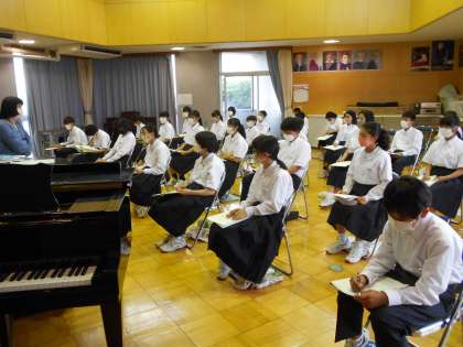 1年生の音楽の授業は、合唱について。合唱の方法や合唱コンクールに関する先生の話を、よく聞いていました。