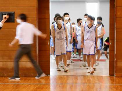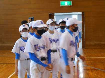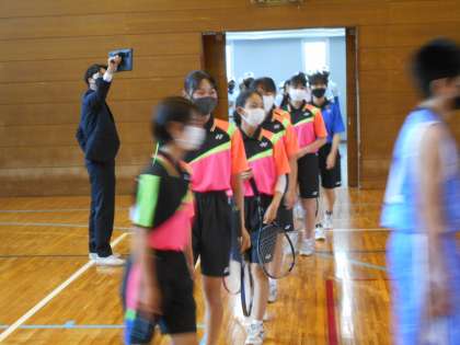 選手入場です。男子バスケットボール部、女子ソフトテニス部、野球部の入場です。