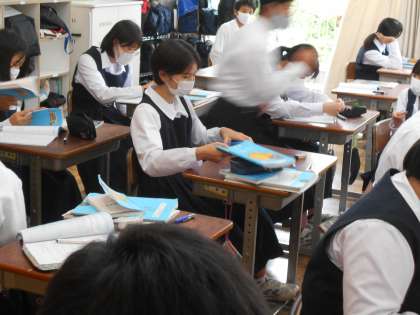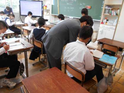 2年生の英語の授業は、英文づくり。皆集中して取り組んでいました。