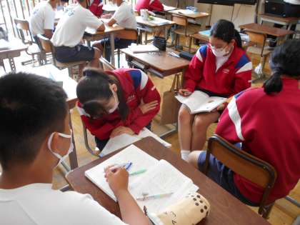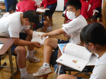 3年生の国語の授業は物語文について。登場人物の心情について意見交換していました。
