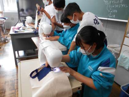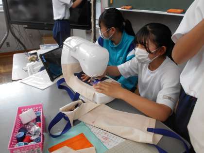 1年生の家庭科の授業は、トートバッグづくり。皆真剣に取り組んでいました。