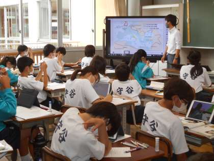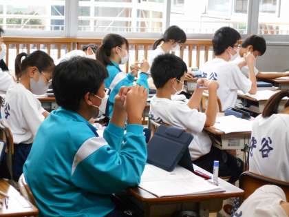 1年生の社会の授業は、ギリシャ・ローマ文明について。皆意欲的に取り組んでいました。