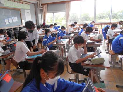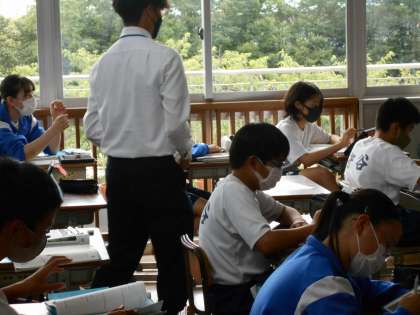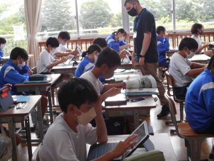 2年生の英語の授業は場に応じた会話文について。皆一生懸命取り組んでいました。