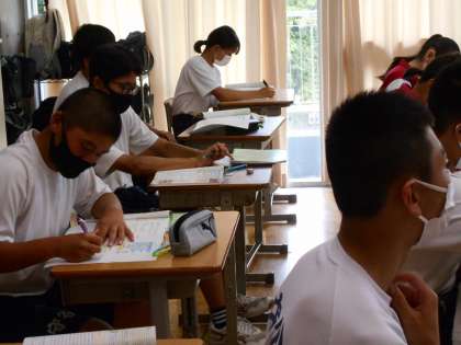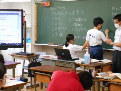 3年生の社会の授業は、憲法について。皆集中して取り組んでいました。
