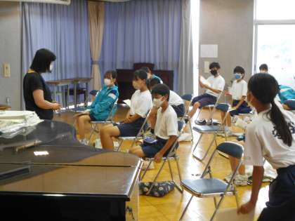1年生の音楽の授業は合唱。パートに分かれて練習していきます。