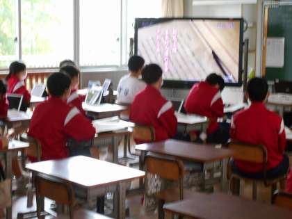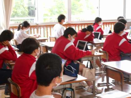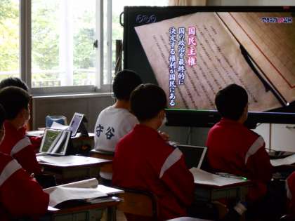 3年生の社会の授業は、日本国憲法について。まとめとして、ビデオを視聴していました。
