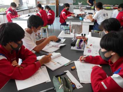 3年生の理科の授業は細胞分裂について。分裂の様子を順に確認していきます。