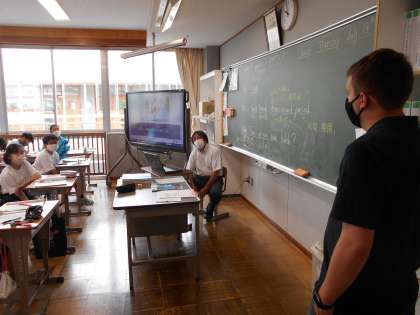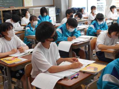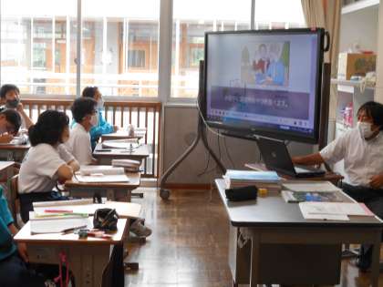 1年生の英語の授業は会話文について。皆一生懸命取り組んでいました。