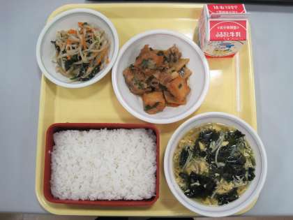 今日の給食 公開日 2022/07/14 更新日 2022/07/14 お知らせ 7月14日の給食は「ごはん、牛乳、豚肉と生揚げのみそ炒め、ナムル、卵とわかめのスープ」です。みそ炒めにはオイスターソースを入れてうまみを足しました。