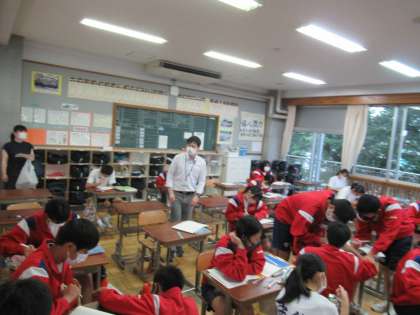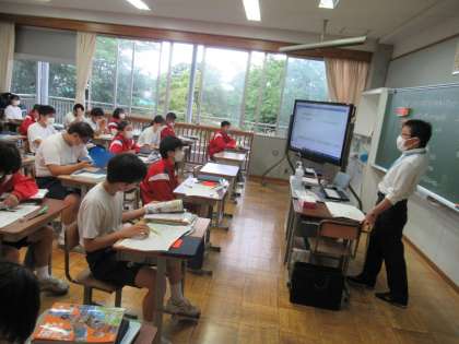 雨の中、たくさんの保護者の方が参観されています。生徒の皆さんは、いつもに増して授業に集中して取り組んでいます。