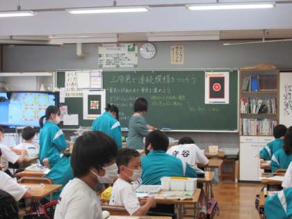 1年生の美術、2年生の数学と社会の授業の様子です。課題に前向きに取り組む守中生。先生方も分かる、楽しい授業づくりに真剣勝負です!