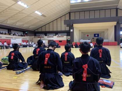 開会式の様子です。終了後、第四試合場で男子団体は一回戦に臨みます。