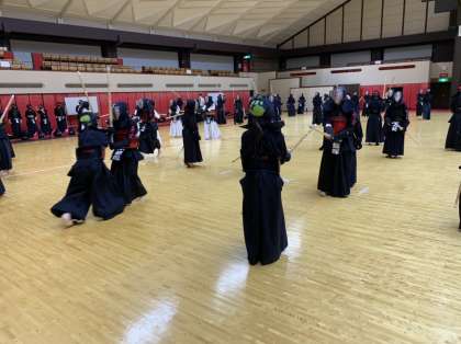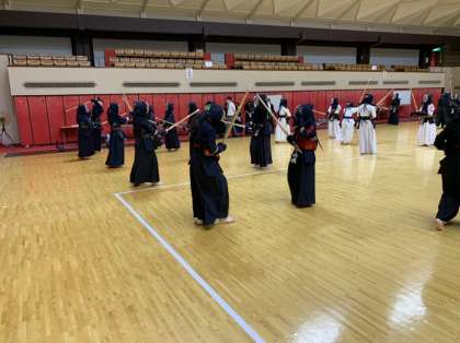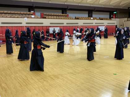 今日は女子団体戦。試合前の稽古にも気合いが入ります。頑張れ守中。