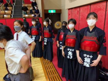 間も無く女子団体戦が始まります。シードの守谷中は、3試合目です。