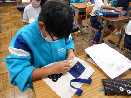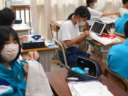 1年生の家庭科の授業は、トートバッグづくり。皆工夫を凝らしながら進めていました。