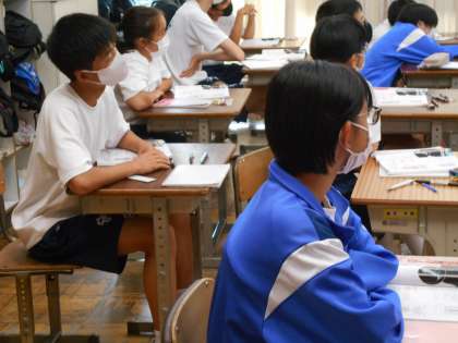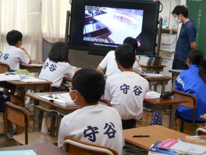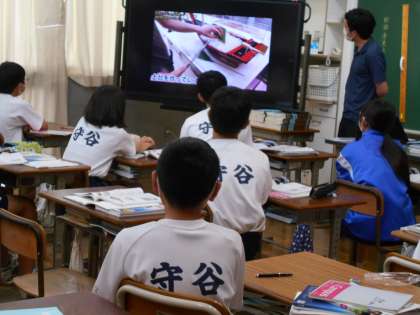 2年生の理科の授業は無脊椎動物のイカについて、ビデオで確認していました。