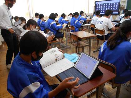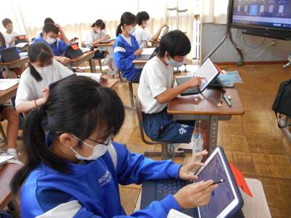 2年生の英語の授業は、練習問題への取組。メタ・モジを用いて意欲的に取り組んでいました。