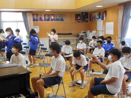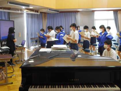2年生の音楽の授業は合唱の練習。皆真剣に取り組んでいました。