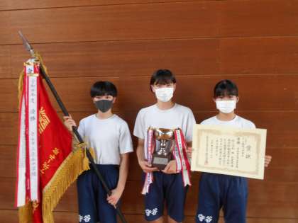 女子バスケットボールの表彰です。県南大会で優勝しました。賞状とカップ、優勝旗 が授与されました。