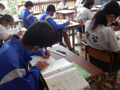 2年生の社会の授業は地理。中国・四国地方についてまとめていました。