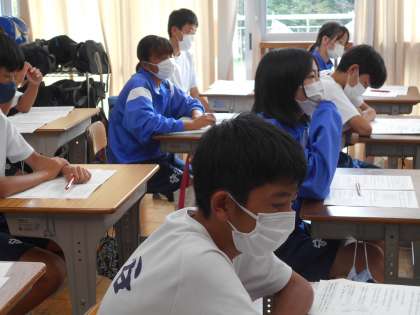 2年生の社会の授業は期末テストの確認。皆真剣に取り組んでいました。