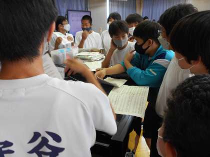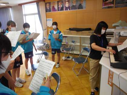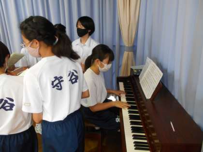 1年生の音楽の授業は合唱練習。パートに分かれて真剣に練習していました。