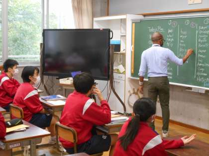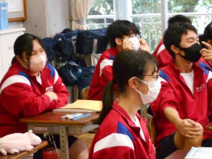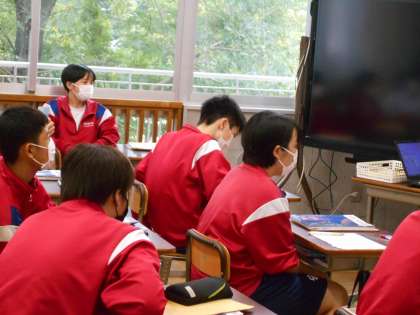 3年生の英語の授業の様子。タイ先生との言葉遊びで盛り上がっていました。