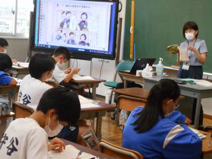 2年生の国語の授業の様子。根拠を吟味して書くことについて、確認していました。