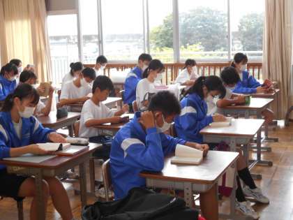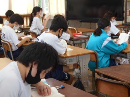 毎日の朝読書。効果として,知識の蓄えはもちろんですが、集中力もアップします。皆真剣に取り組んでいました。