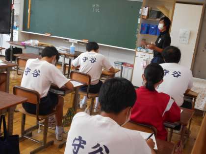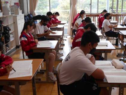 3年生の国語の授業は、期末テストの確認。皆一生懸命取り組んでいました。