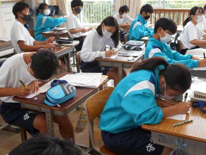 1年生の家庭科の授業は、トートバッグづくり。皆真剣に取り組んでいました。