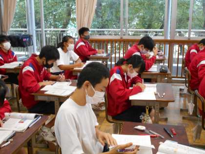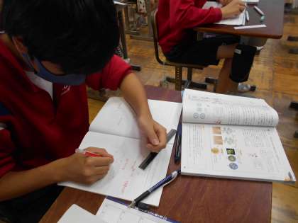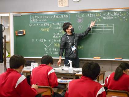 3年生の理科の授業は遺伝について。遺伝子の組み合わせと現れる形質について確認していました。