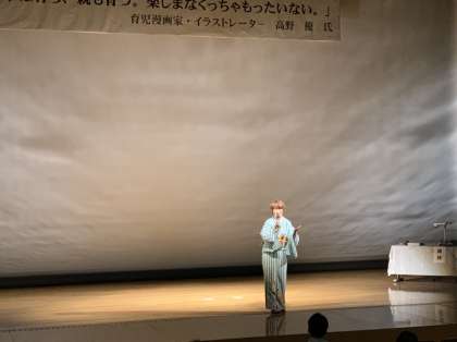 高野優様の御講演は、御自身の子育ての体験や、子どもの頃に感じられた切なさや優しさについて。我々大人は、子供に対して、優しい言葉を掛けることが何よりも大切であることを再認識させてくださる感動的な御講演でした。この研修会開催に当たっては、たくさんのPTAの方々に御尽力いただきました、誠にありがとうございました。