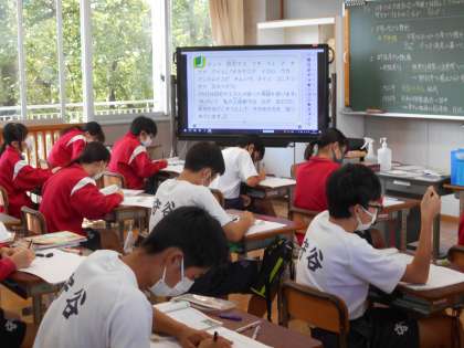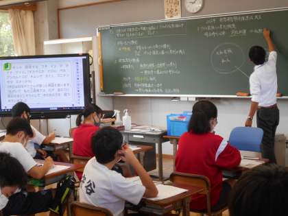 3年生の社会の授業は、共同社会の実現について。人権や差別について考えていました。