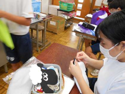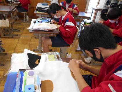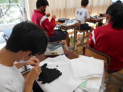 3年生の家庭科の授業はクッション作り。素敵なデザインを考えていました。