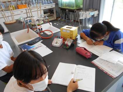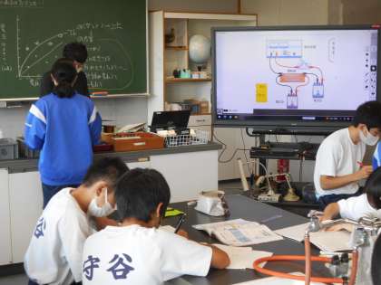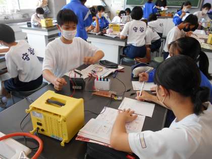 2年生の理科の授業は電流と電圧の関係について。実験結果から推測していました。