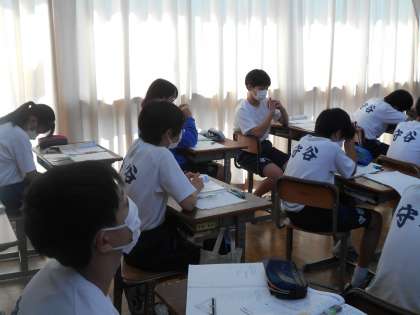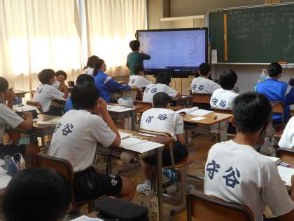 2年生の数学の授業は、連立方程式について。グラフの読み取りについて考えていました。