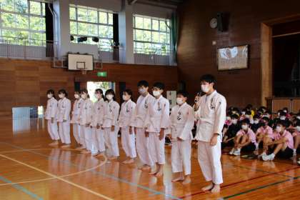 新人戦 各部の意気込み 公開日 2022/09/14 更新日 2022/09/14 生徒たちの活動 女子ソフトテニス、女子バスケットボール、柔道部の様子。 それぞれ、しっかりとした目標を立て、堂々と発表しています!