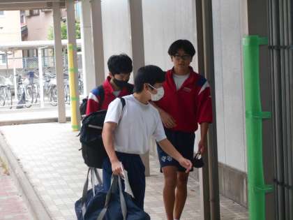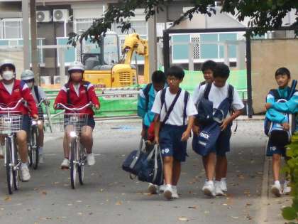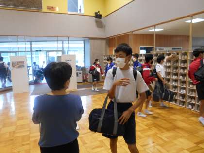 生徒が元気に登校してきました。今日も頑張りましょう!