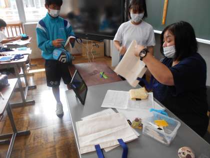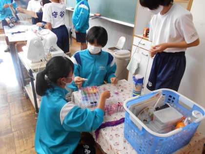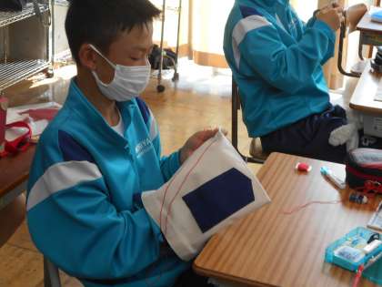 1年生の家庭科の授業はトートバッグづくり。皆真剣に取り組んでいました。