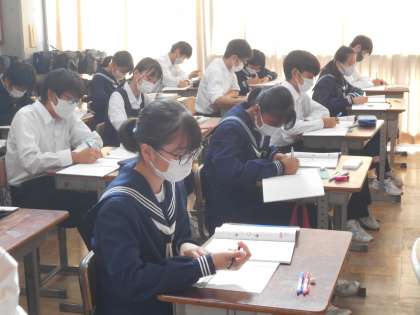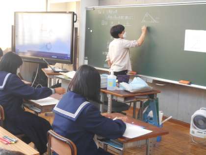2年生の数学の授業は、三角形の角の性質について。皆真剣に取り組んでいました。
