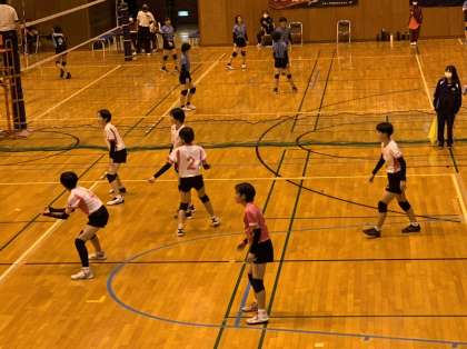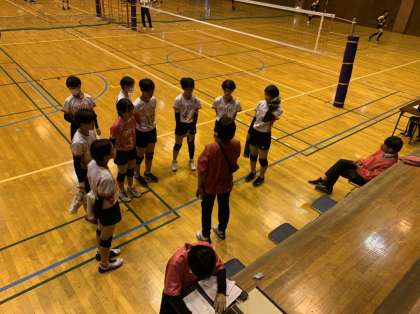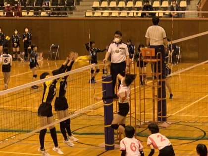 強豪八郷中との試合、1セットを取られました。逆転目指して頑張ってください。